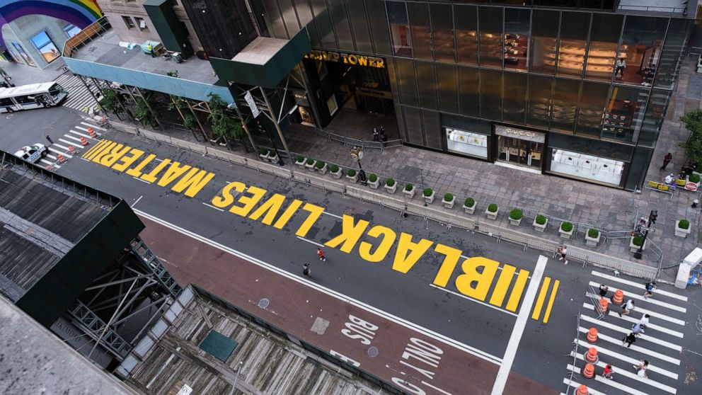 У ЊУЈОРКУ је жути натпис Black Lives Matter, који је постављен испред Trump Tower , трећи пут за недељу префарбан.