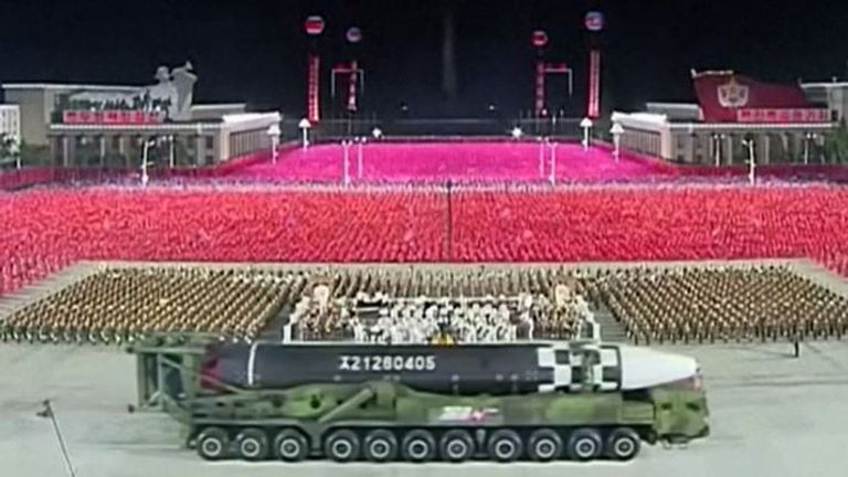 Парада је почела у поноћ на тргу Ким Ил Сунг у Пјонгјангу. А он је и ту околност засенио: