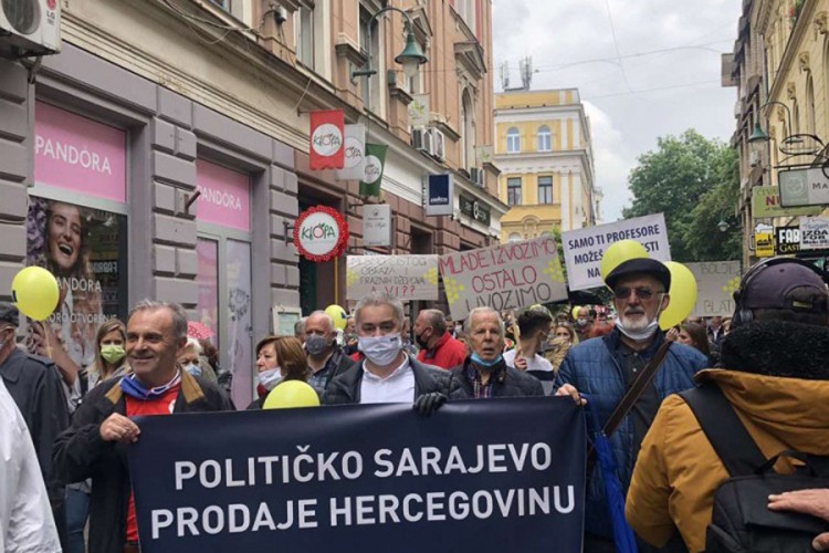 ВИШЕ хиљада људи данас се окупило на протесту у Сарајеву, који – по свему судећи – треба да одигра улогу детонатора протеста у Бањалуци и другим градовима Републике Српске.