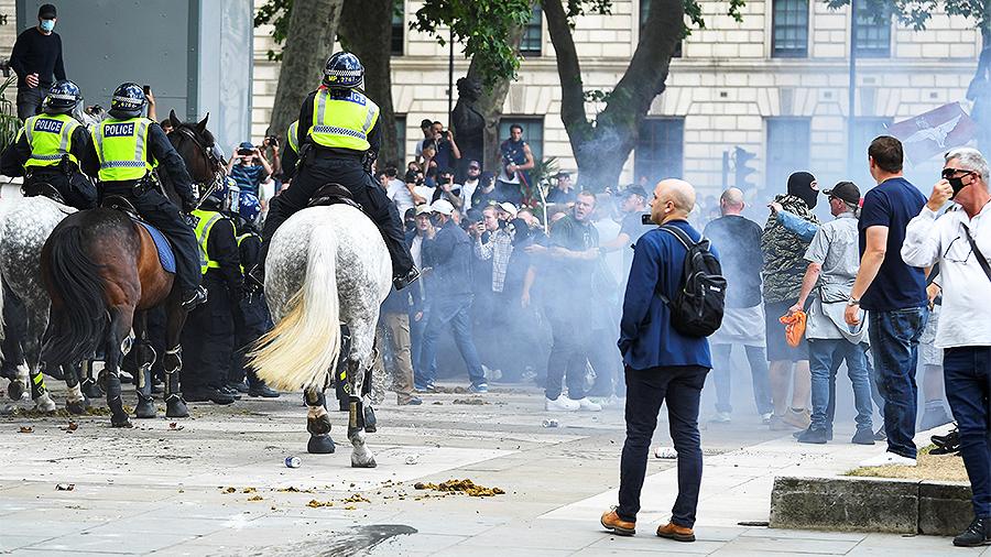 Првобитно је било планирано да се у Лондону одрже четврте демонстрације „покрета за црначка права“, али су на сцену изашли организовани навијачи, ветерани и десничари – са намером да од „бораца против расизма“ заштите историјске споменике и полицију.