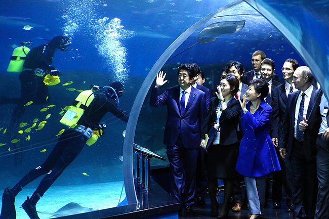 ЈАПАНСКИ ПРЕМИЈЕР ПРИСУСТВОВАО ОТВАРАЊУ ЏИНОВСКОГ ОКЕАНАРИЈУМА КОД ВЛАДИВОСТОКА