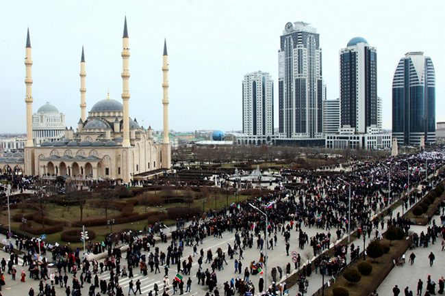 Председник чеченског парламента, Магомед Даудов, рекао је окупљенима: „Овде смо да дамо прави одговор непријатељима Русије. Наша земља наступа као моћна држава која има свој поглед на оно што се догађа у свету. То се, као што видимо, не свиђа онима који који не желе да наша многонационална земља буде јака и самостална. Зато морамо бити јединствени. Кад смо заједно - ми смо сила и у стању смо да се боримо за величину своје земље чије је главно богатство - њен вишенационални народ“.