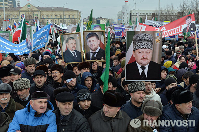 - Председник Чеченије Рамзан Кадиров није говорио н митингу, али је пре четири дана упозорио да „вансистемска опозиција“ покушава да греје руке на тешкој економској ситуацији. Нагласио је да се према таквима треба односити као према „издајницима“ и судити им за „подривачку делатност“. Притом је припретио свима који „наносе штету Русији“