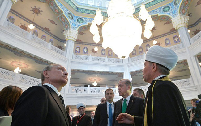 - ЕРДОГАН: „Русија је блистав пример искуства добросуседских и мирних односа под једним кровом људи различитих конфесија и етничких корена. Данас смо поново сведоци како Москва окупља сву разноврсност народа, уједињује њихове духовне вредности, ствара јединствени животни простор и свима даје сјајан пример за будућност”