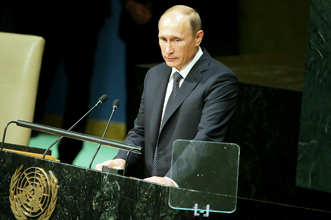 РУСКИ лидер Владимир Путин - наступивши на јубиларном 70-ом заседању Генералне скупштине УН - упозорио је да се проблем избеглица и миграната може решити једино обновом уништене државности земаља из којих долазе.