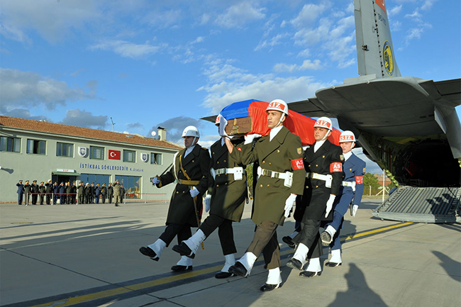 Почасни вод турске армије испраћа ковчег руског пилота