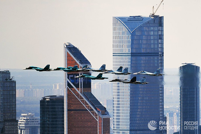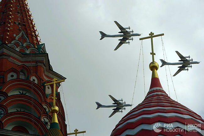 Посматрачи параде - и они на Црвеном тргу и они испред телевизора широм света - видеће и стратешке бомбардере Ту-95МС, летеће танкере Ил-78, војно-транспортне Ан-124 и Ил-76МД, ловце Су-35С, Су-ЗОСМ, Су-27, МиГ-29, МиГ-31БМ, фронтовске бомбардере Су-34, Су-24М, јуришне Су-25 и школско-борбене Як-130.