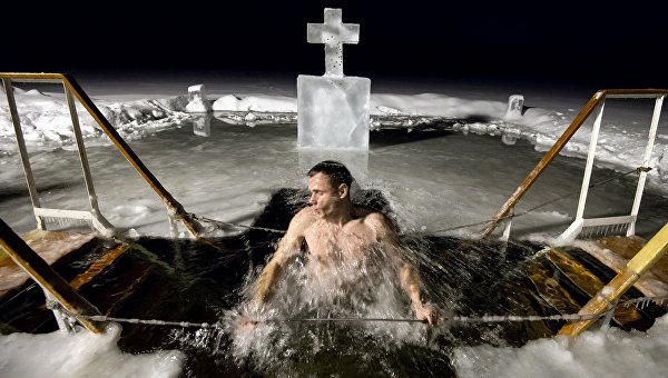 Традиционално, у Русији се ради тога праве округли отвори у леду - или у облику крста.