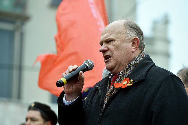 - Лидер КПРФ оценио да би национализација удвостручила приходе државног буџета и пред 10.000 присталица у центру Москве рекао: „Због чега бисмо и даље дозвољавали да 10 одсто најбогатијих држе у својим рукама 87 одсто националног богатства?! Зашто бисмо се мирили са тиме што пола Русије живи на нешто више од 200 евра месечно?!