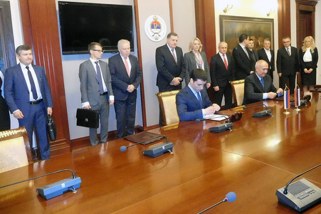 ПОТПИСИВАЊУ СПОРАЗУМА ПРИСУСТВОВАЛИ ДОДИК, ЦВИЈАНОВИЋ И АМБАСАДОР РФ У БИХ ПЕТАР ИВАНЦОВ