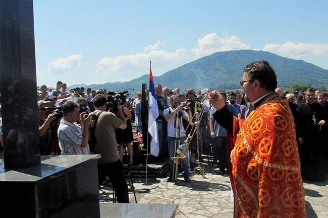 У БРАТУНЦУ је данас обележен дан страдања Срба у Подрињу, парастос и помен убијеним и погинулим Србима одржан је на градском гробљу у Братунцу, а венце и цвеће на спомен-крст страдалим Србима положили су председник РС Милорад Додик и министар Србије за рад, запошљавање, борачка и социјална питања Александар Вулин.