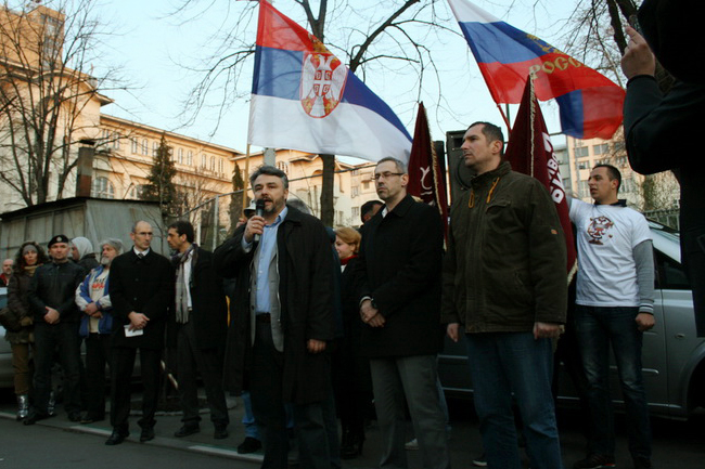 На скупу у Београду су говорили чланови Старешинства Покрета Двери Владан Глишић, Зоран Радојичић и Срђан Ного, затим проф. др Мила Алечковић и др Миша Ђурковић (Српски код), а скуп је завршен тако што је делегација Покрета Двери предала писмо за Амбасадора Руске Федерације Александра Васиљевича Чепурина.