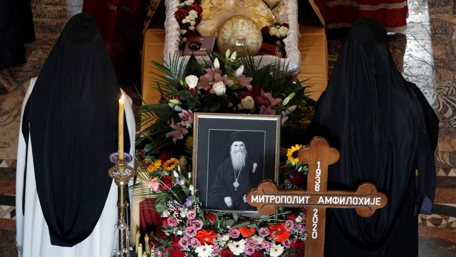 На сахрани митрополита Амфилохија, уз присуство великог броја српских владика и црквених великодостојника, опело је служио патријарх српски господин Иринеј.