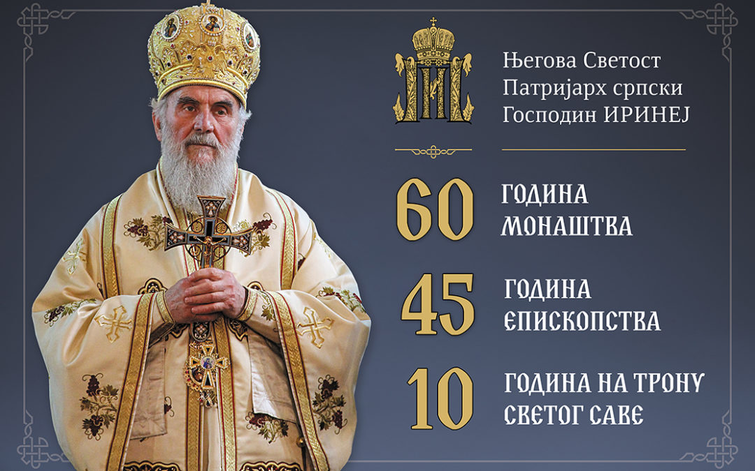У ОРГАНИЗАЦИЈИ Патријаршијске управне канцеларије у Патријаршијском двору у Београду данас 22. јануара 2020. године прослављена је деценија од избора Његове светости Патријарха српског г. Иринеја за 45. по реду предстојатеља Српске православне цркве.