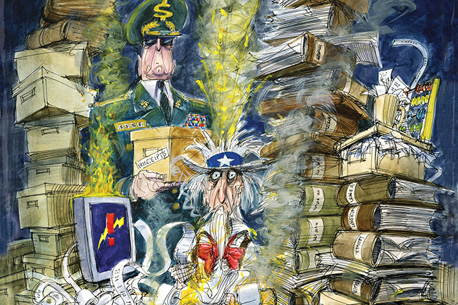 Пентагон – то је велика финансијска бирократија са неоправдано високим трошковима ,систематично прецењиваним активима, Конгрес САД одобри новац за, на пример, куповину резервних длова, а купује се нешто сасвим друго.
