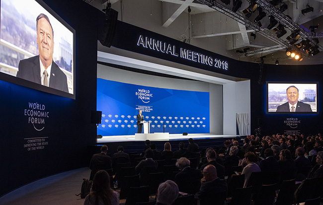 СЈЕДИЊЕНЕ Државе и Русија нису осуђене су да буду противници и да се међусобно супротстављају као што је то било у време Хладног рата – рекао је учесницима Светског економског форума у Давосу Мајк Помпео.