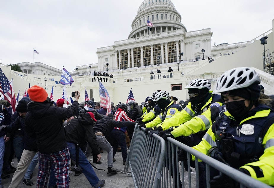 „Сматрамо за веродостојно да је неко погођен у груди у згради Капитола. То није био нико у униформи, па можемо претпоставити да је то био демонстрант, али не знамо са сигурношћу“.