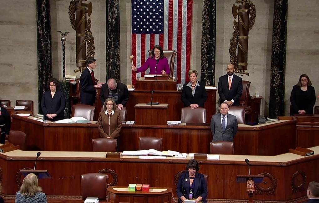 * Спикер Представничког дома – демократкиња Ненси Пелоси – дошла је на седницу у црној хаљини са великим златним брошем у облику орла. Била је кратка: „Трагично је што је председник својим чињењем импичмент учинио неопходним. Он нам није оставио други избор“