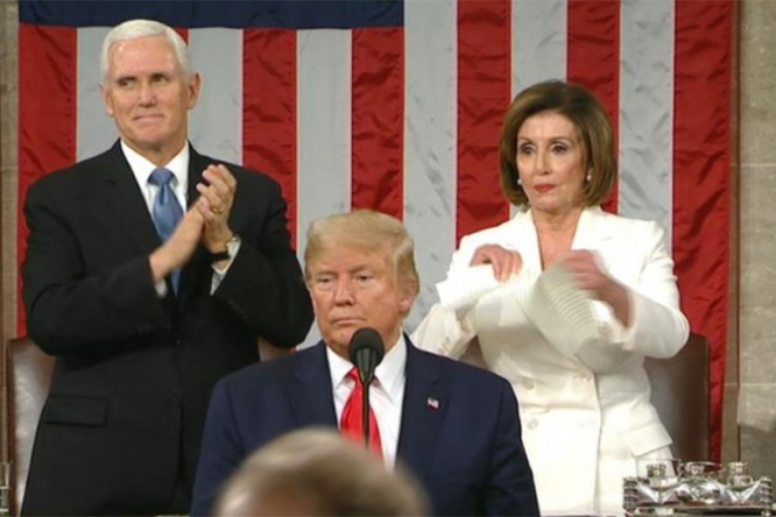ОБРАЋАЊЕ америчког председника Доналда Трампа у Представничком дому Конгреса САД, током којег је поручио да је стање нације боље него икада раније, засенио је инцидент са председавајућом тог дома Ненси Пелоси.