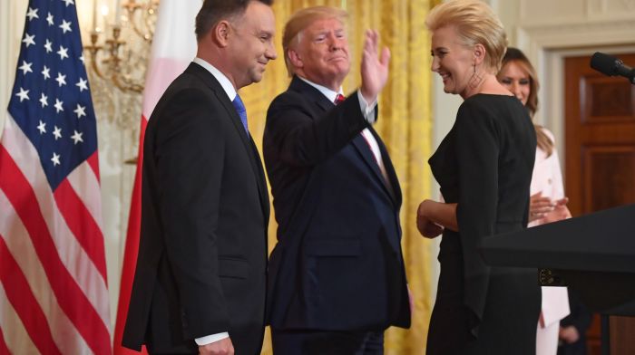 „Имам одличну поруку Пољацима. Наш потпредседник, Мајк Пенс, управо лети према њиховој земљи... Напросто желим да честитам Пољској. То је прелепа земља са дивним људима. Волимо наше пољске пријатеље“.