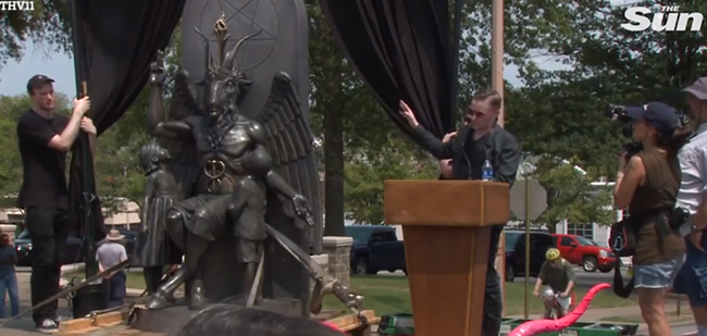 Са позивањем на Први амандман, скулптуру су наручили и поставили активисти „Сатаниног храма“.