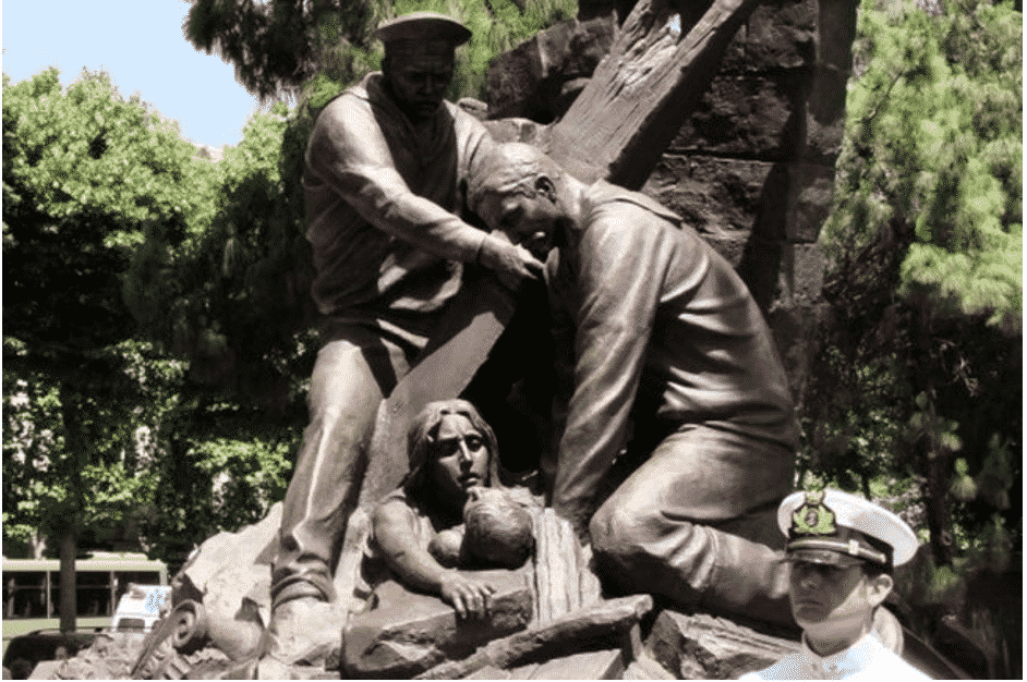 Споменик у част подвига руских морнара који су спасили становнике Месине (Сицилија) након разорног земљотреса у децембру 1908. Натпис на два језика: „Руски морнари, хероји милосрђа и самопожртвовања. Захвални потомци и становници Месине“