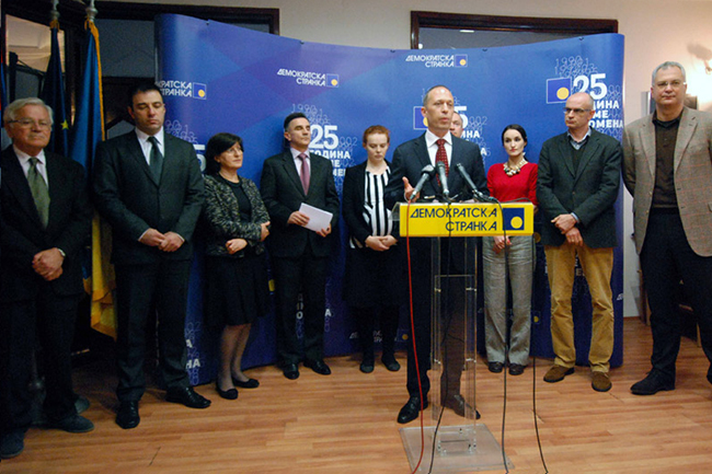 Он је подсетио да ДС, док је била на власти, никада, па чак ни кад је била суочена са захтевима Међународног монетарног фонда, није спуштала плате и пензије, него је радила супротно.
