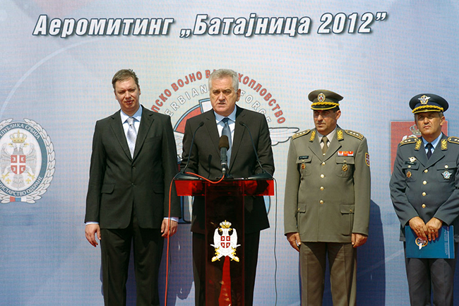 „Очекујем од владе Србије да у оквиру расположивих средстава уложи максималне напоре на ревитализацији војних објеката и имовине, подстицању стицања знања и да осавремењује опрему, побољша материјално стање војске“, истакао је Николић на отварању аеромитинга којим се у Батајници обележава век српске авијације.