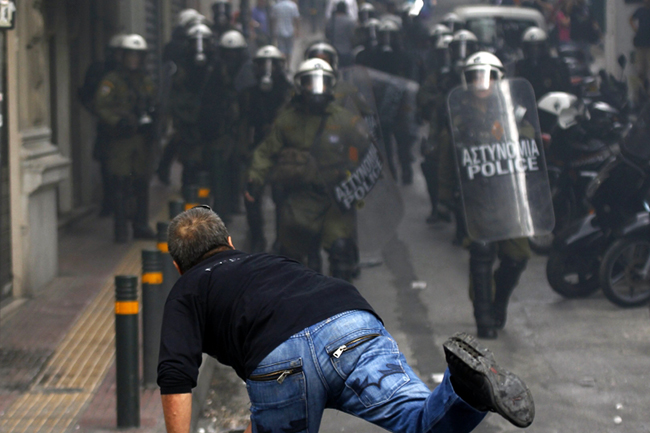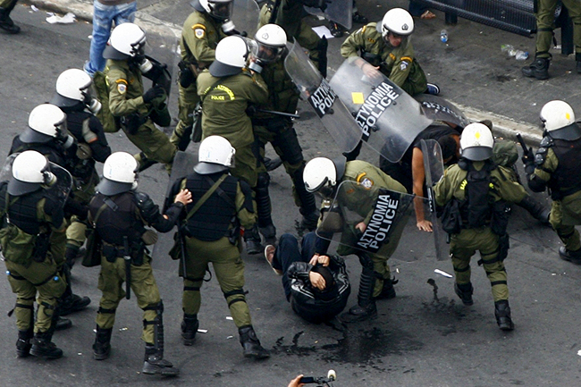 Агенција Франс прес наводи да се на централном тргу Синтагма окупило око 25.000 људи и да су демонстранти покушали да сруше челичну барикаду у близини зграде парламента у којој се немачка канцеларка састала са грчким лидерима.
