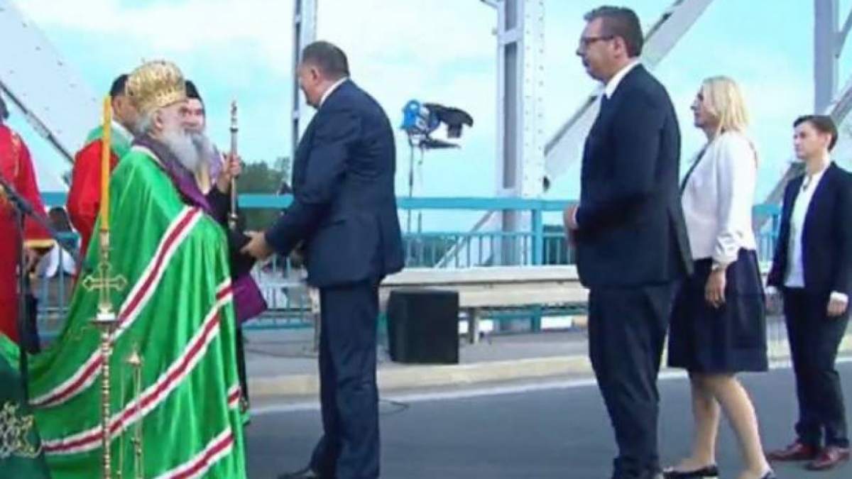 СРПСКИ ЧЛАН ПРЕДСЕДНИШТВА БиХ СА ВУЧИЋЕМ И ПАТРИЈАРХОМ НА МОСТУ КОД СРЕМСКЕ РАЧЕ