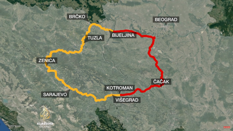 "Не желимо да се та траса завршила на Сави или Дрини него да уђе у Српску и даље се креће према Брчком одакле би крак ишао према Тузли и Сарајеву. Што се тиче Српске, ми бисмо наставили да градимо аутопут од Добоја где смо већ стигли са ауто-путем из правца Бањалуке. Тиме бисмо имали спојену Бањалуку, Бијељину и Београд", истакао је Додик.