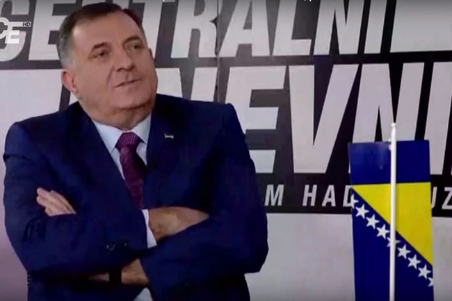 "Он само покушава да то глуми. Показао се као човјек који је кроз низ потеза које је чинио навијао искључиво за бошњачку страну", рекао је Додик.