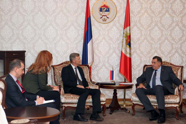 Председник Републике Српске данас је, иначе, током разговара са Брусом Бертоном, шефом мисије ОСЦЕ-а у БиХ, рекао да ће се залагати за поштовање Устава и Дејтонског споразума како је написан, те за очување мира и видљив економски напредак.