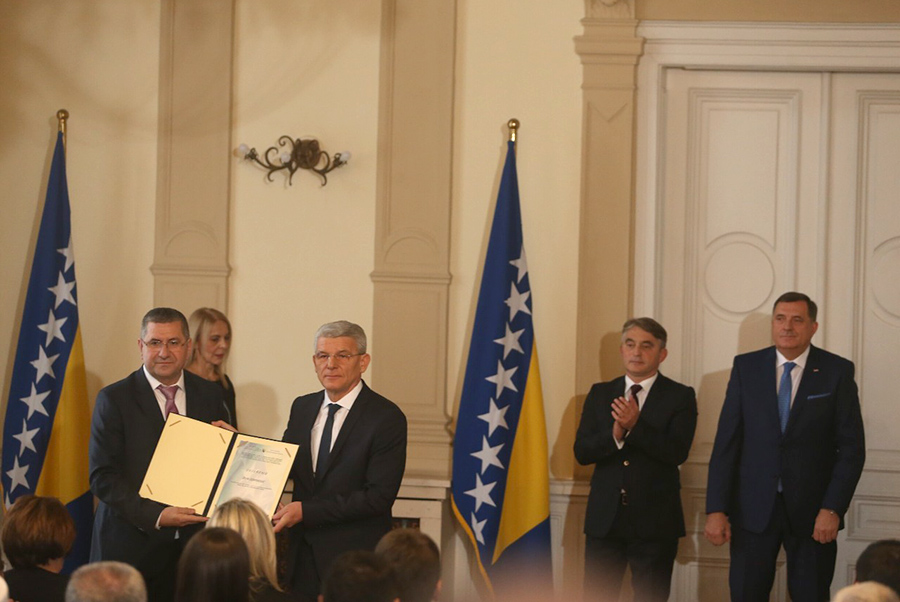 Зато је конститутивни седницу отворио Бакир Изетбеговић досадашњи председавајући Председништва БиХ, а након тога је Бранко Петрић, председник ЦИК-а, уручио сертификате новоизабраним члановима Председништва БиХ.