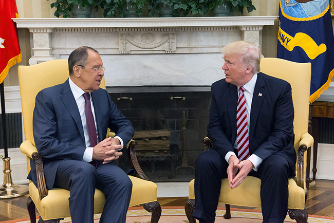 - Председник САД се 10. маја срео са Сергејом Лавровом и донедавним руским амбасадором у Вашингтону Сергејом Кисљаком. До њега је дошло - дан након што је Трамп сменио директора Федералног истражног бироа Џејмса Комија