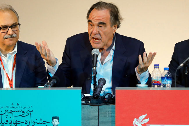 Редитељ филмова „Џеј-Еф-Кеј“ и „Вод“ говорио је на конференцији за новинаре у Ирану и за своје коментаре је добио аплауз.
