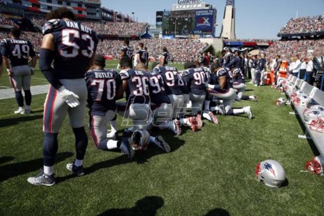 Више од 100 играча данас је седело или клечало, што је облик протеста који је прошле сезоне почео бивши квотербек Санфранциско фортинајнерса Колин Кеперник. То се ради да се искаже протест према начину на који полиција третира црнце и према социјалној неправди. Кеперник је сада слободан играч и навијачи верују да су тимови избегавали да га узму због његовог протеста.