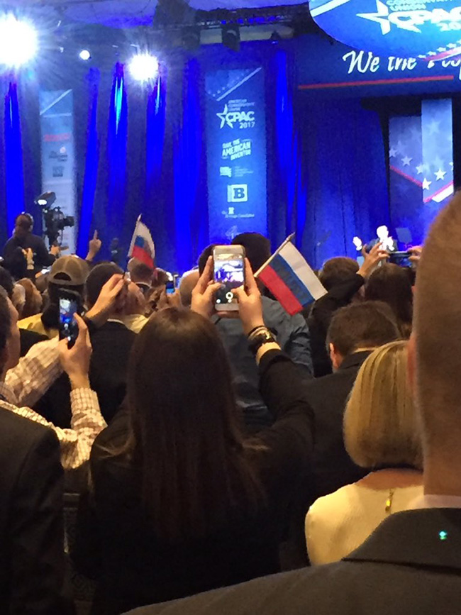 ОРГАНИЗАТОРИ конференције у предграђу Вашингтона осујетили су провокацију уперену против Доналда Трамп чији актери је требало да масовно користе у руске заставе, односно – заставице.