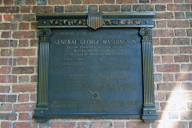 Меморијална плоча Џорџу Вашингтону у Александрији