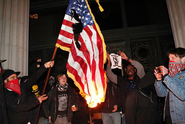 Полиција Окленда је саопштила да је део демонстраната имао импровизоване пластичне штитове и металне шипке. А да су против њених официра примењивали петарде, запаљиве смесе, флаше, каменице и пајсере. На све ово, полиција је, поред хапшења, одговорила димним бомбама и сузавцем.
