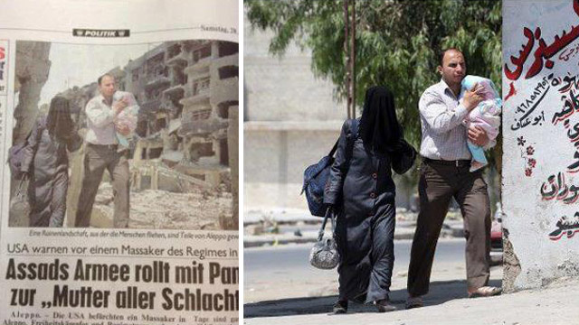 Да ли су на слици уопште становници Сирије и да ли је позадина заиста град Алеп - након овакве срамотне пропаганде не може се са сигурношћу потврдити.