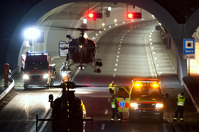 Акција ослобађања тела из аутобуса који се пракрично „уградио“ у зид тунела, трајала је до ујутру, око 20 повређених је хеликоптерима пребаћено у болнице, а учествовало је око 200 вартогасаца, спасилаца и болничара, као и 12 возила хитне помоћи.
