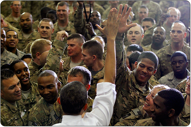 Обама се, што није изненађујуће, „код куће“ суочио са критиком своје „кабулске мисије“. Републиканци нису пропустили прилику да његов кабулски „блиц криг“ назову „предизборним маркетингом“ срачунатим на то да се бирачи „фасцинирају потврдом најављеног повлачења из Авганистана“.