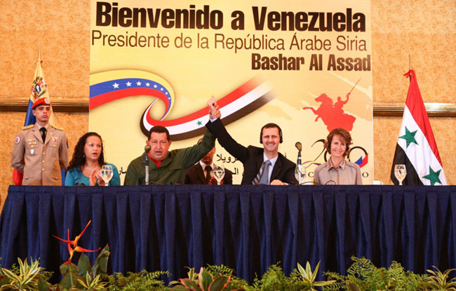 Асад се посетио је Венецуелу 2010. За време састанка с Чавезом оценио је да је Венецуела "предводник борбе за ослобођење народа региона".