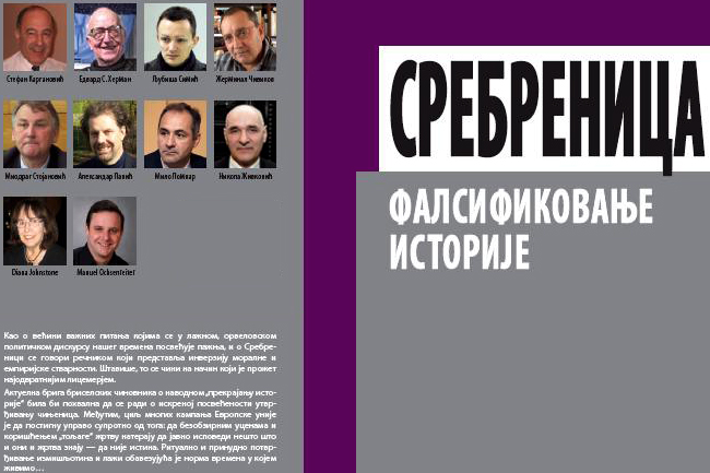 У саопштењу се наводи да је књига „Сребреница: Фалсификовање историје“ зборник критичких есеја поводом „Масакра у Сребреници“, студије америчког професора Едварда Хермана и групе страних аутора. Књигу чине есеји 10 страних и домаћих аутора који критички и документовано разматрају догађаје у Сребреници у јулу 1995. године.