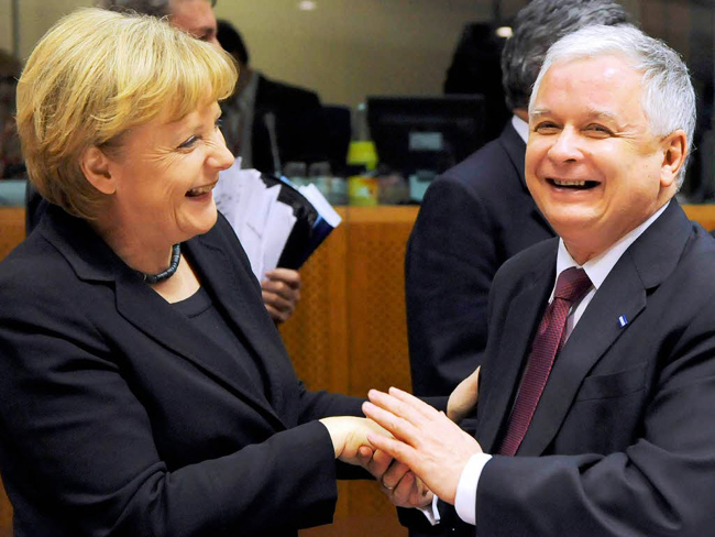 „Меркелова припада оној генерацији немачких политичара који поново желе да успоставе немачку империјалну моћ“, пише Качињски. Он се осврће и на ситуацију на западу земље у којој је велики број немачких улагача. И они су пољском политичару својеврсни „трн у оку“. „