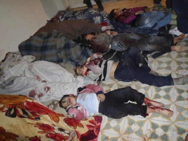 * Масакрирани цивили у Хомсу, чији су лешеви намерно пребачени на терен под контролом регуларне армије, били су отети и ножевима побијени знатно раније – саопштило сиријско министарство за информације