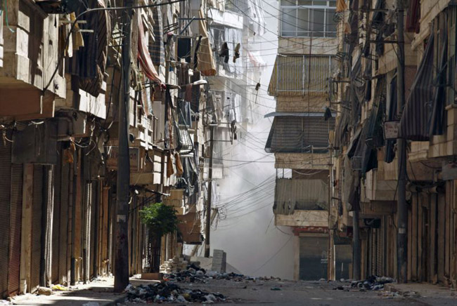 Ал Ватан је објавио и репортажу француског војног дописника Адриана Жилмеса из листа Фигаро који је у Алеп ушао заједно са одредом наоружаних побуњеника и посведочио да је рејону Сахур био уништен „командни центар бандита”.
