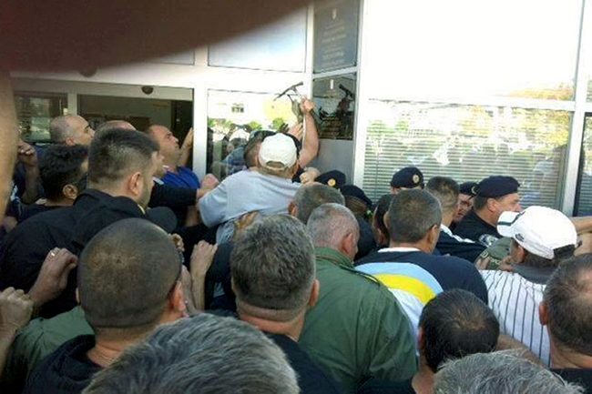 „Одједном су насрнули на њих, сатерали их уз стаклени зид и чекићем разбили и скинули са зграде двојезичне табле с натписом „пореска управа“. Трајало је то око минут и по, након чега су се демонстранти повукли, као и полицајци од којих је један у гурању задобио повреду и повукао се држећи се за врат, док се једна полицајка болно држала за раме“, пише „Јутарњи“.