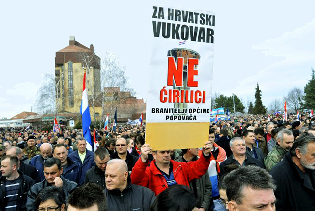 ХРВАТИ из Вуковара, који се противе увођењу ћирилице у службену употребу, распоредили су на улазима у град, где намеравају да дежурају и скидају табле са двојезичним натписима ако буду постављене, објавили су чланови тзв. Стожера за обрану хрватског Вуковара.